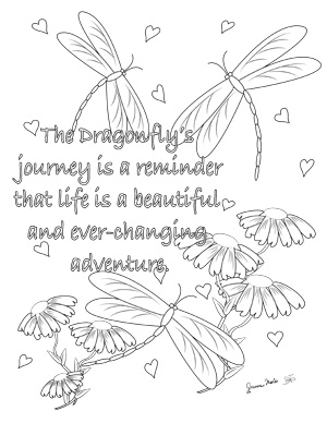 Instant digital download: The Dragonfly’s Journey is from the My Enchanted Garden Sayings is an colouring page to print at home.